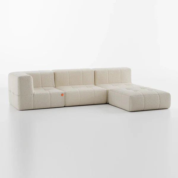 Sofá na Caixa modular 3 lugares em Boucle - 1 Braço com Chaise - Linho Grátis
